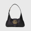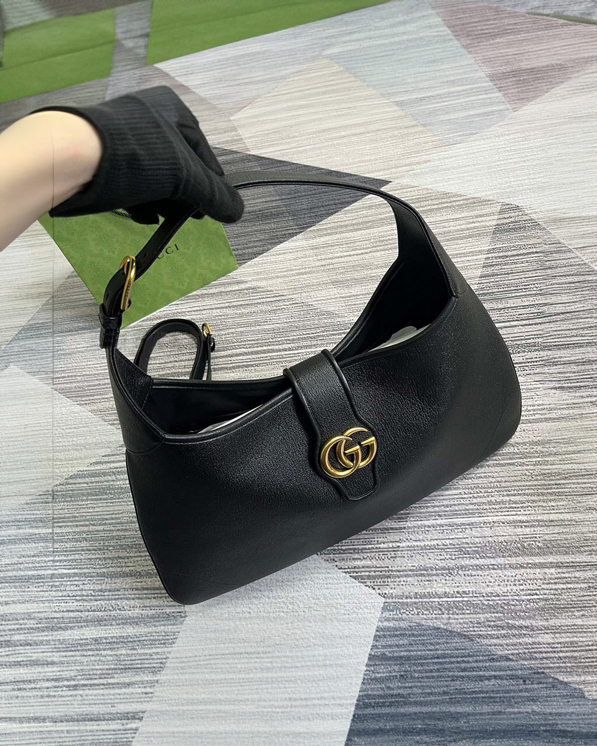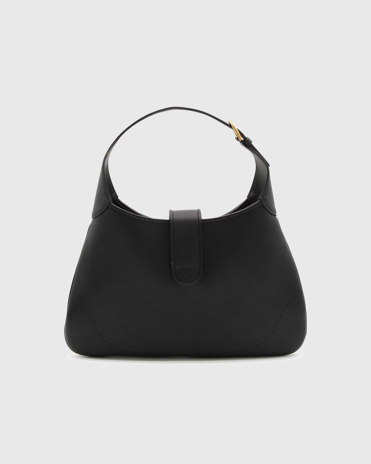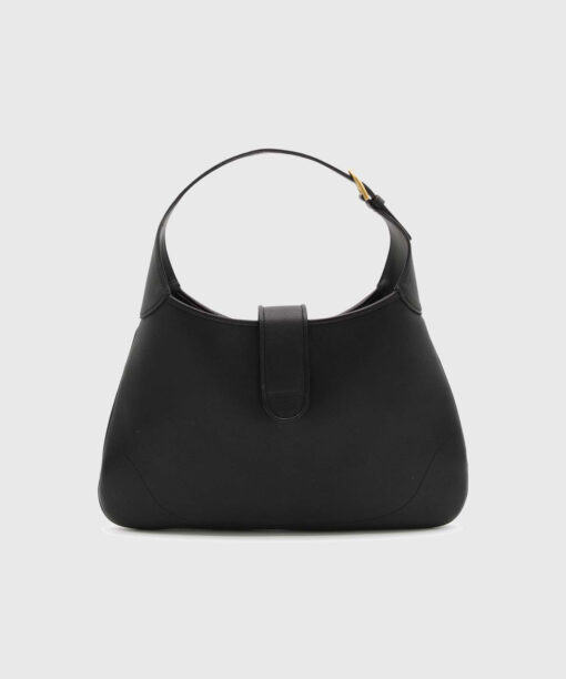 This brand-new shoulder bag in the shape of a crescent was inspired by archives and is a part of a line that was displayed on the runway. It is made of soft material and has the symbol, a code that was first used in the 1970s.
