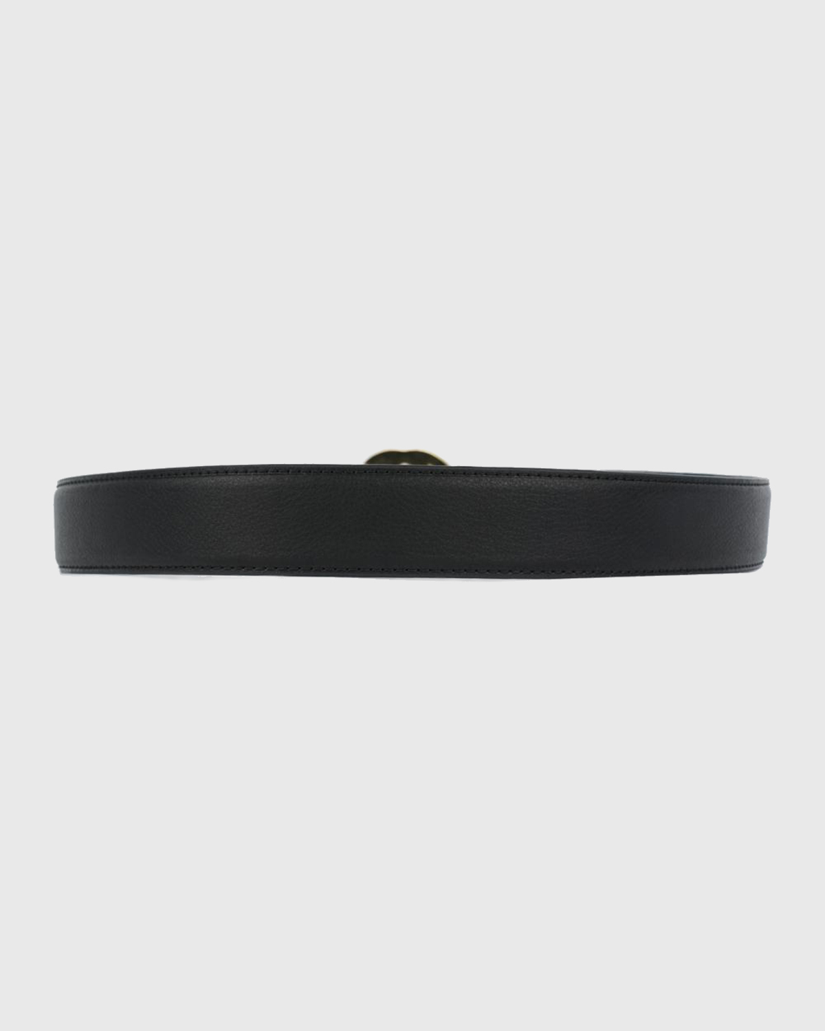 The GG Love Parade show conquered the iconic Hollywood Boulevard. A collection characterized by the freedom of expression that permeates Los Angeles, and which embraces the idea that there is no rule in dressing. On this note, accessories and ready-to-wear apparel continue to be reinterpreted along with archival elements. Here, this black leather belt is defined by an archival version of the House logo.