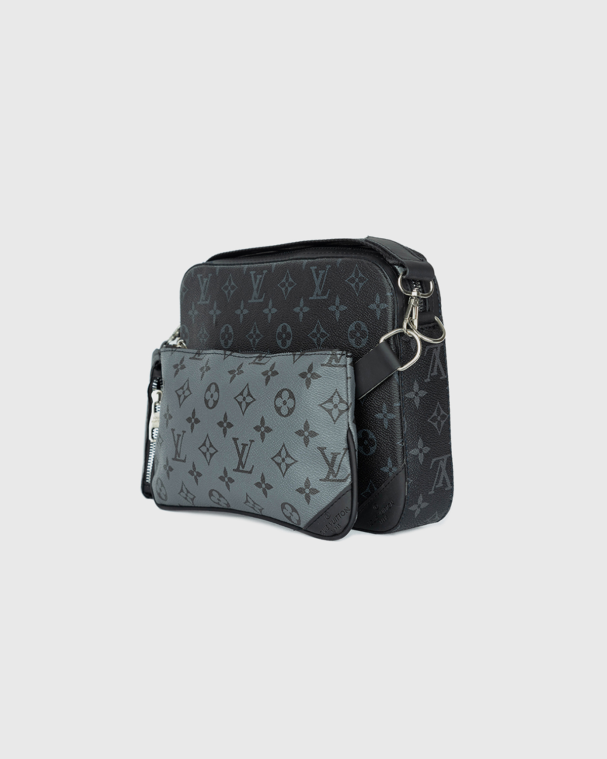 The gray tiny bag section adds a bit of structure and contrast, while the black main bag compartment provides plenty of space. The compact wallet that is included completes the look and guarantees that your necessities are always close at reach. This set smoothly adjusts to your needs and style whether you wear it on your shoulder or cross-body.