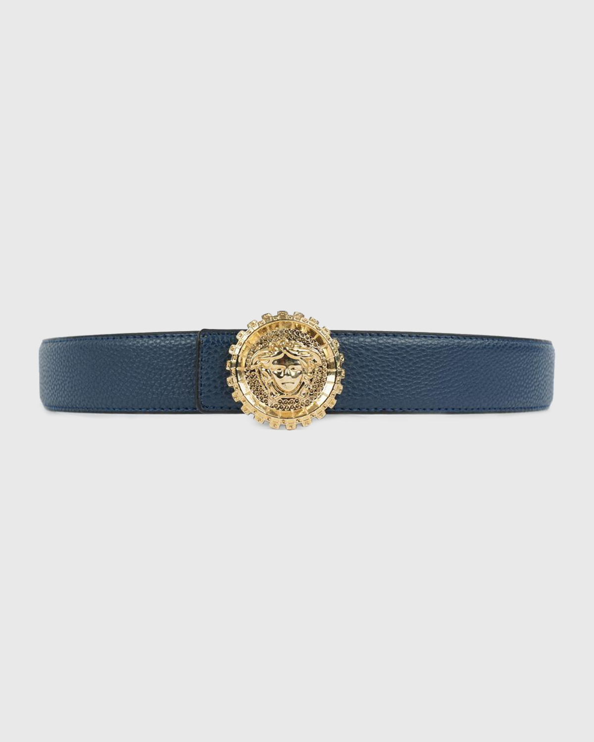 new vrs crystal strass embellished Medusa gold buckle blue belt