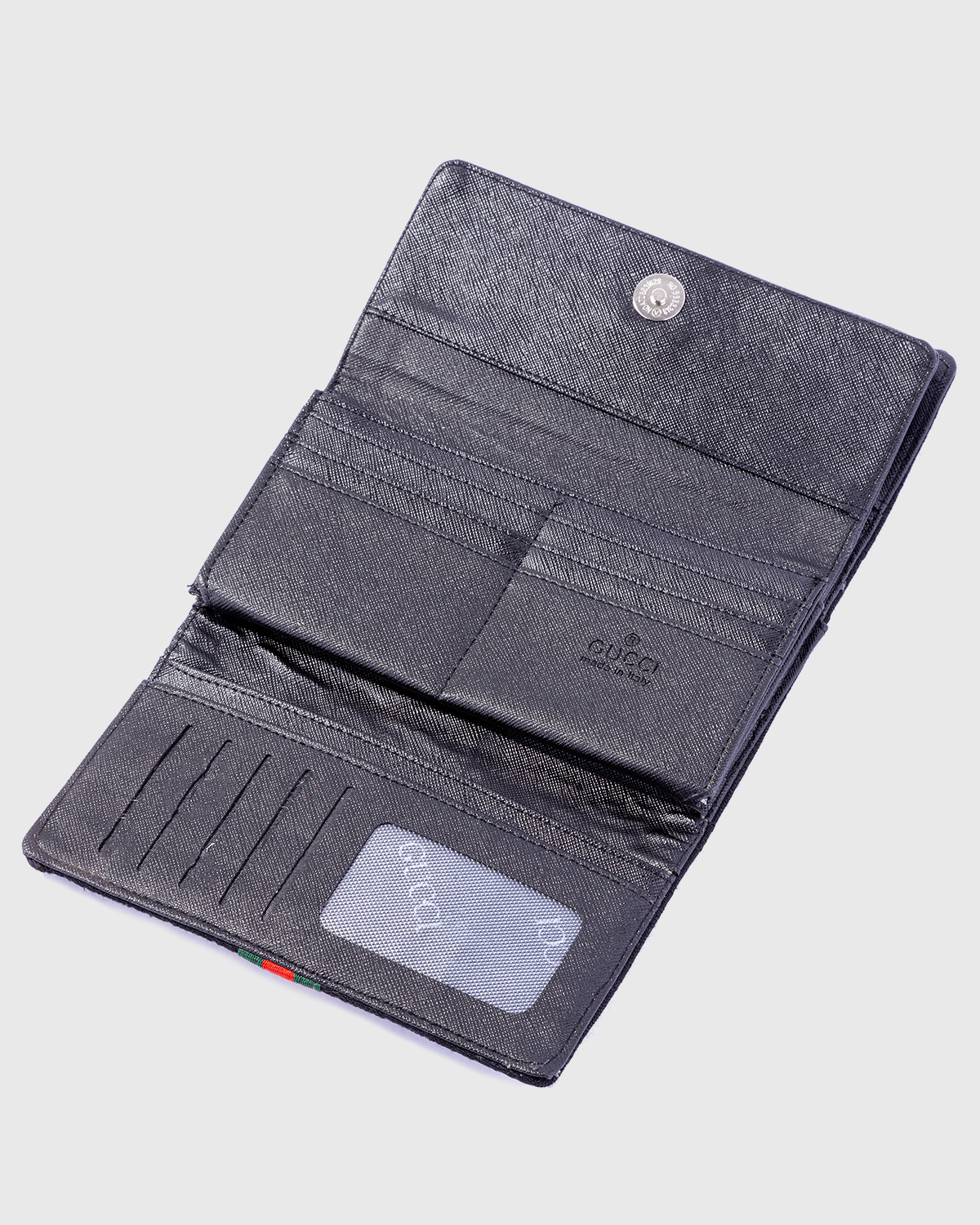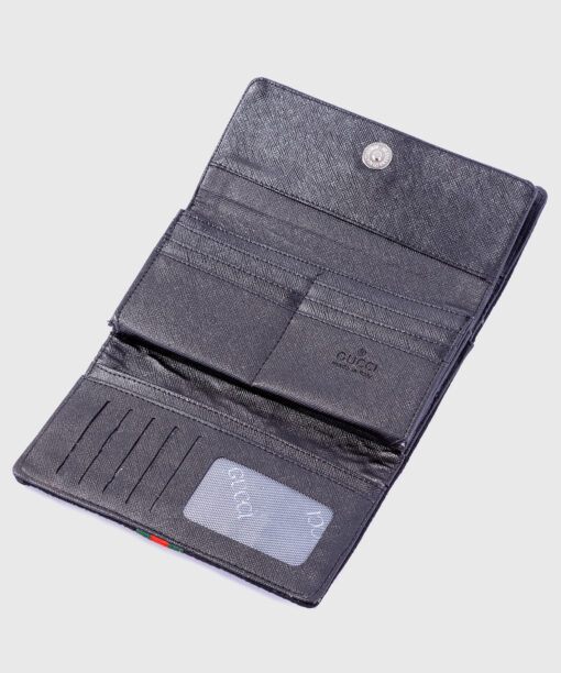 The wallet showcases your exceptional taste with its interlocking logo at the front, tonal stitching, and beautiful silver-tone hardware. A effectively structured interior with two compartments and two bill compartments may be found inside. This wallet guarantees that your necessities are easily organized and accessible with a total of 12 card spaces.