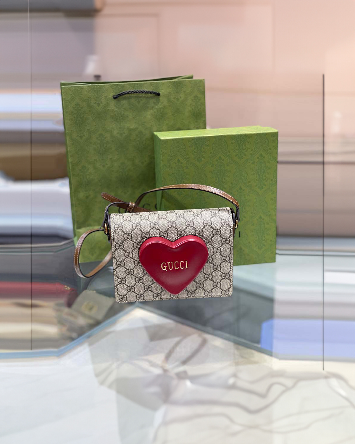 Valentine’s Day Mini Shoulder Bag in Beige and Ebony Supreme Canvas