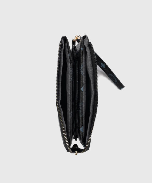 This pouch is ideal for safely keeping all of your belongings in one location because it has a big main area and covert inner pockets. Wear it hands-free or simply attach its wristlet to carry it as a beautiful accessory.